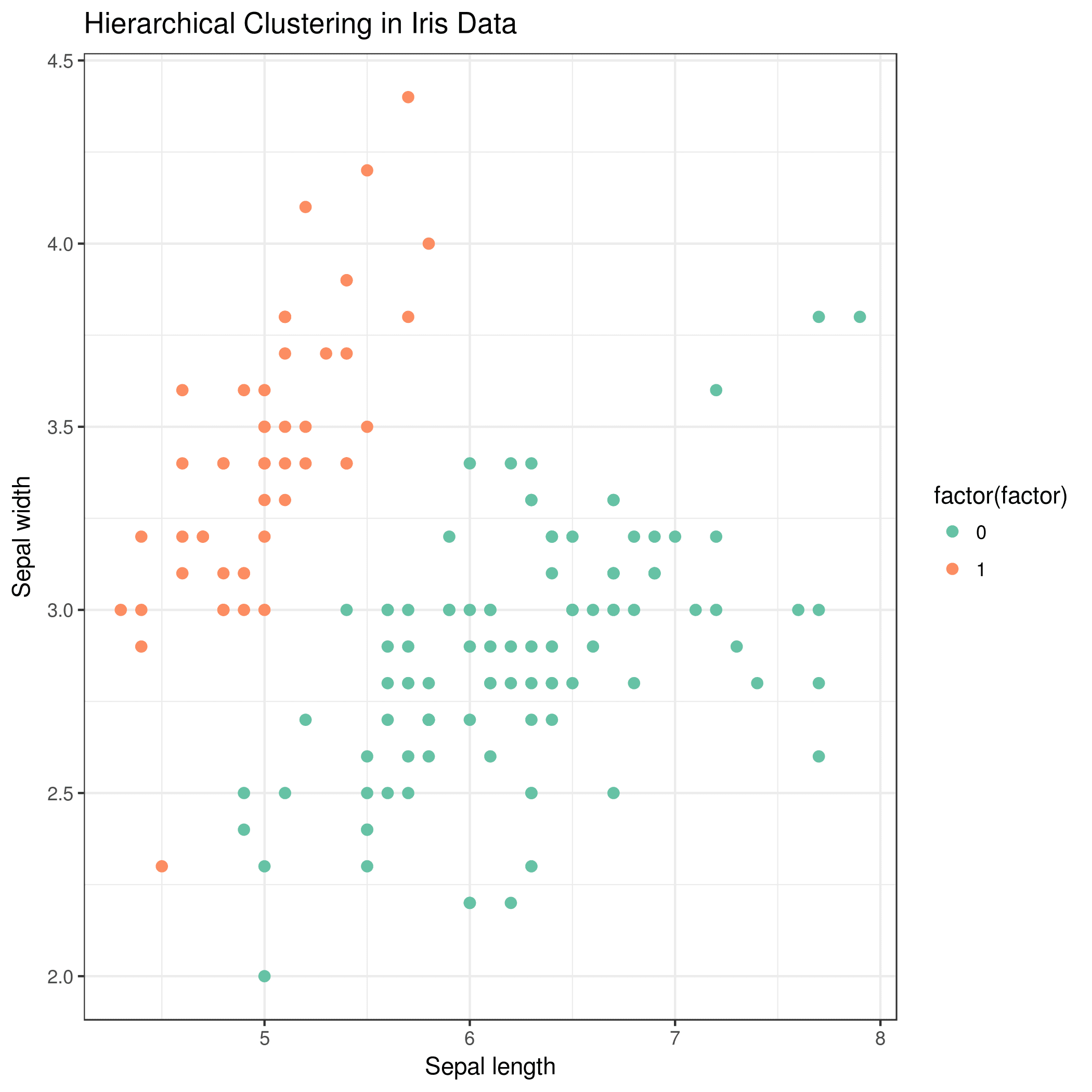 You will also notice that the green points (factor = -1) in the plot are not contained within any cluster. DBSCAN does not necessarily categorize every data point, and is therefore works very well with handling outliers in a dataset.