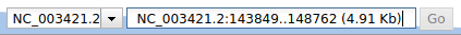 NC_003421.2:143850..148763(meaning: on the sequence namedNC_003421.2(NCBI identifier for Chromosome III), between positions143850and148763).